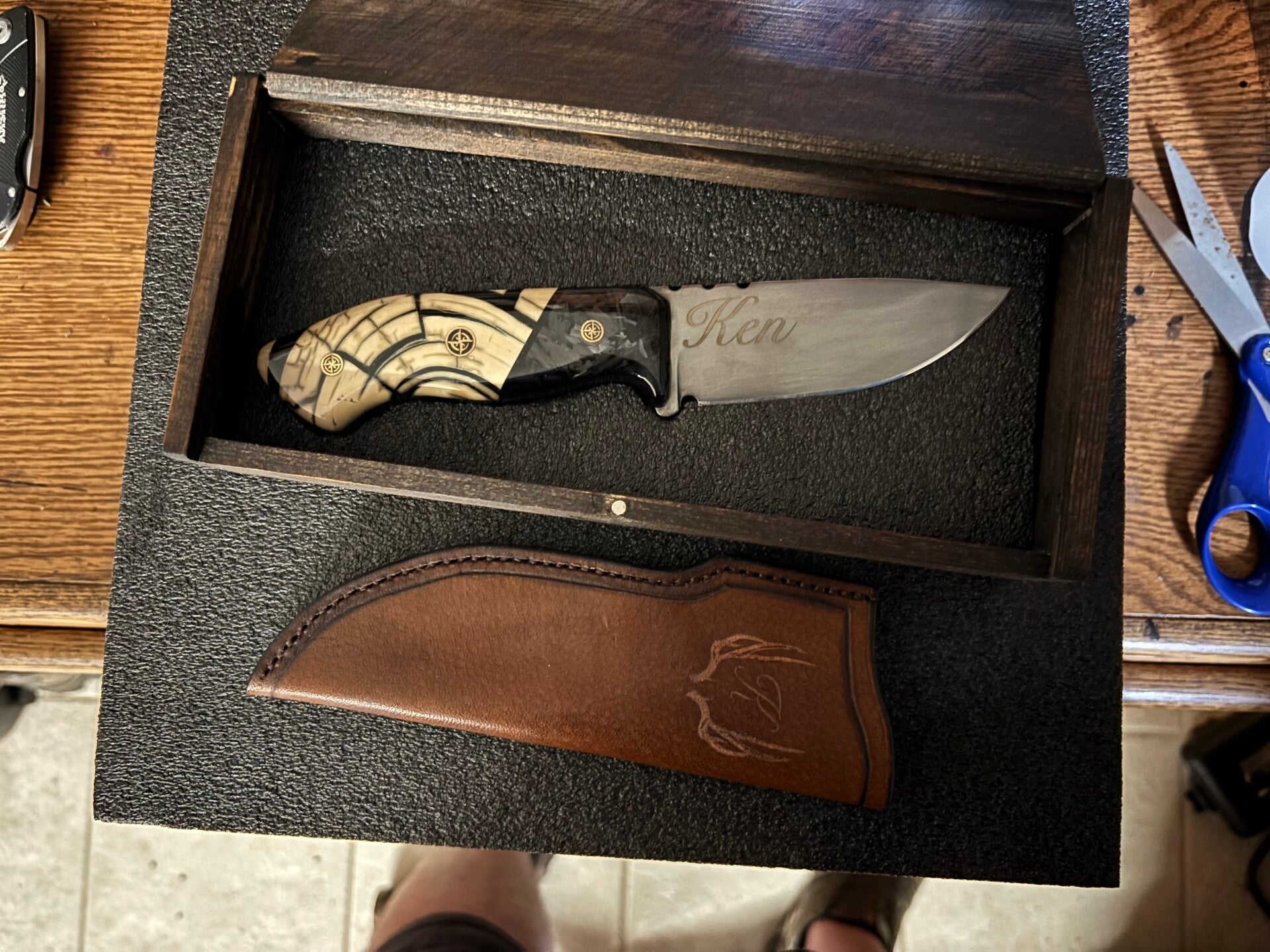 Also, I can engrave initials or small amount of wording on the sheath and or the blade of the knife